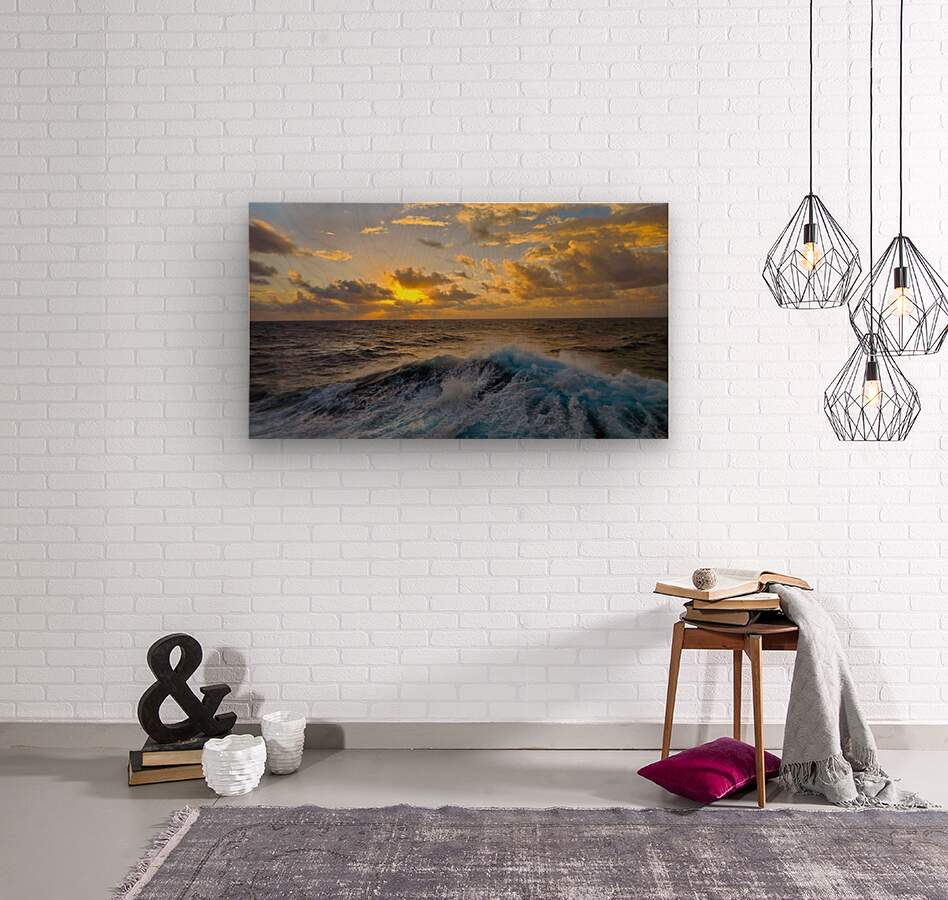 Ocean Sunset  Golden Skies and Turquoise Waves in Perfect Harmony Wood print