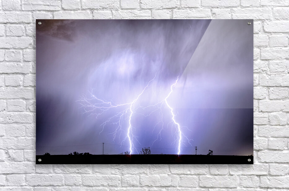 Lightning bolts striking the Colorado Dacona oil fields in harmony. Two lightning bolts striking next to a oil well pump jack. Colorado fine art nature landscape lightning weather photography poster prints decorative canvas prints acrylic prints metal prints corporate artwork greeting cards and stock images by James Bo Insogna C - All Rights Reserved. Please feel Free to share our links with Family or Friends who may also enjoy them. If you like my Art Gallery please spread the word and press the Pinterest FB Google+ Twitter or SU Buttons! Thank you! *PLEASE NOTE WATERMARKS WILL NOT BE ON THE PURCHASE PRINTS*