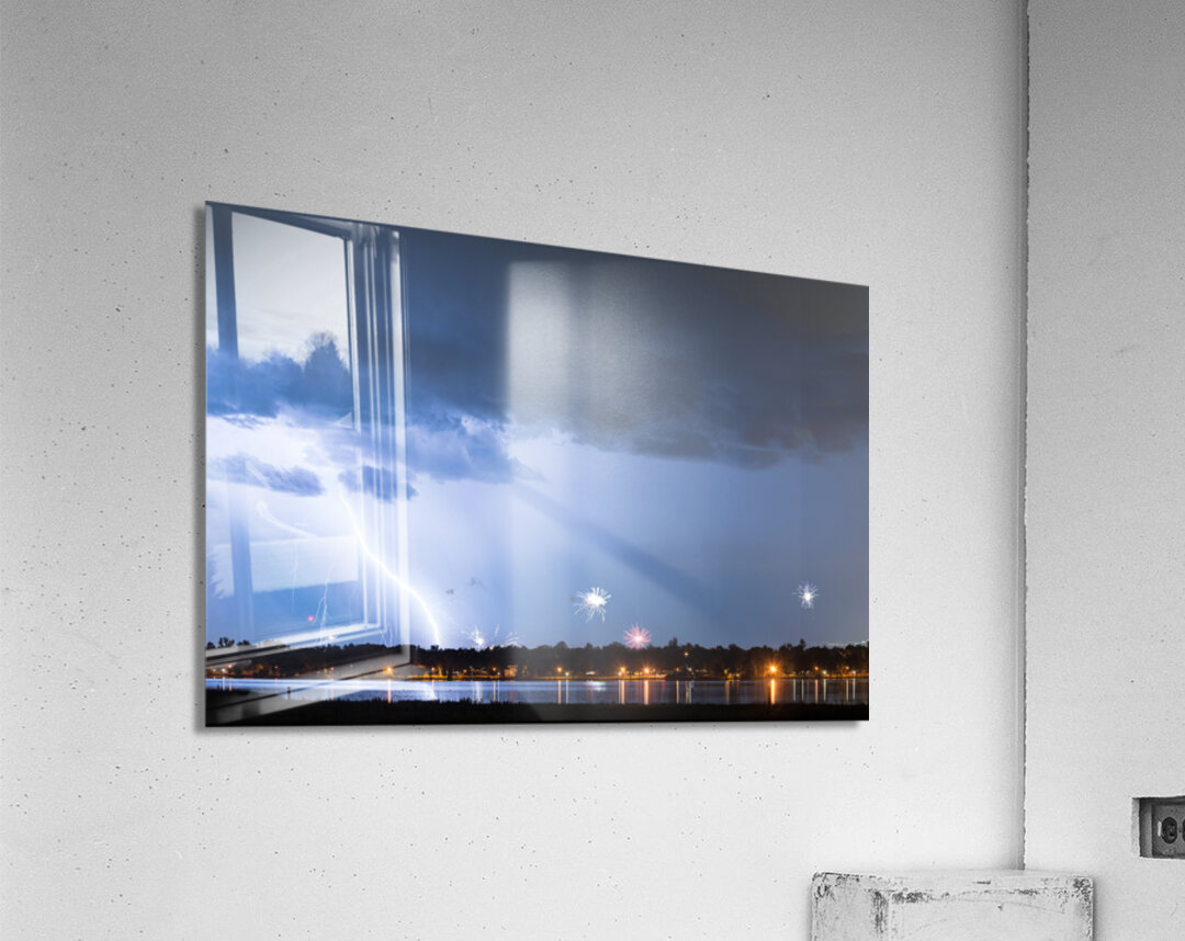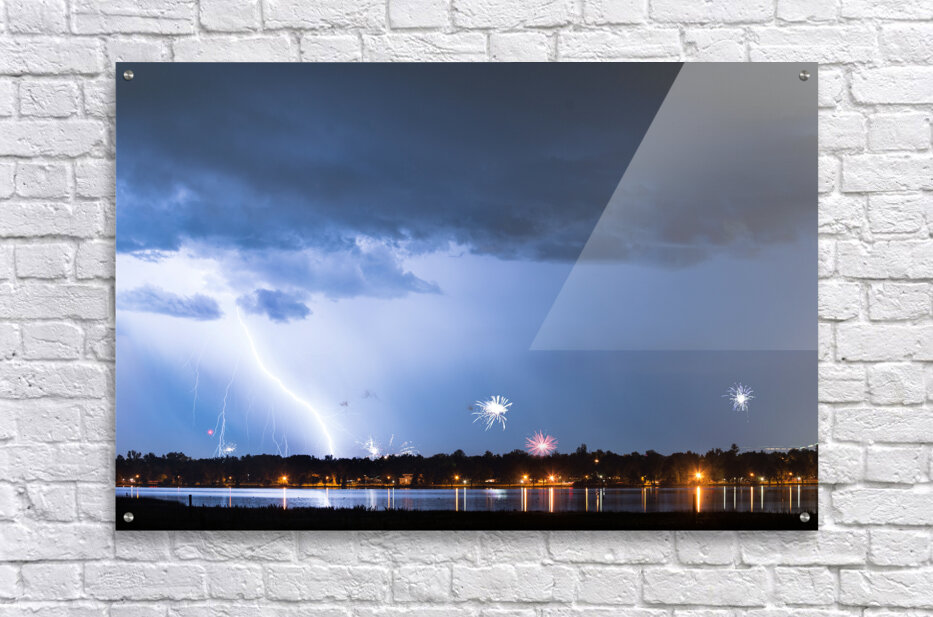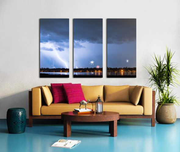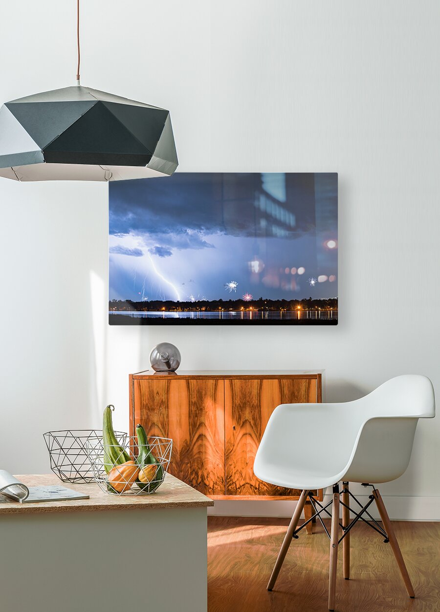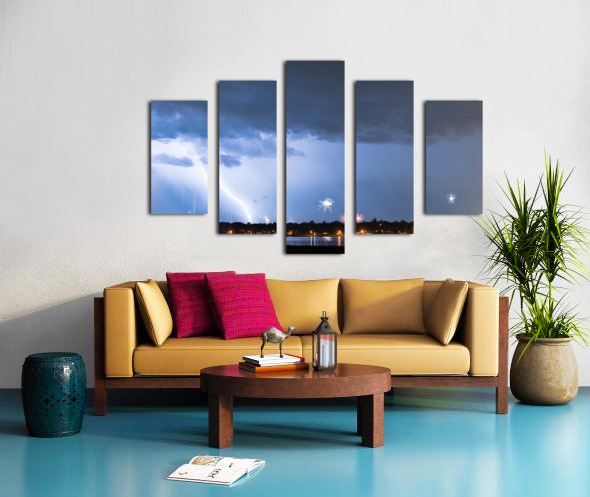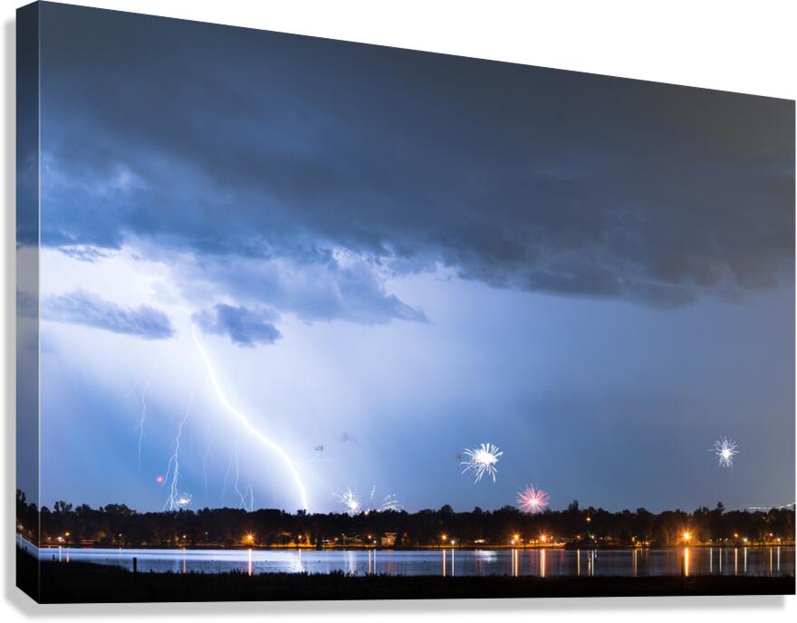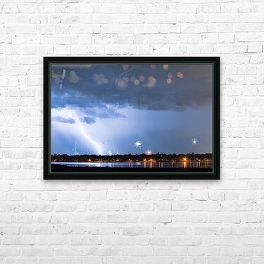 Get this artwork "Lightning Strike and Fireworks" in a framed print.