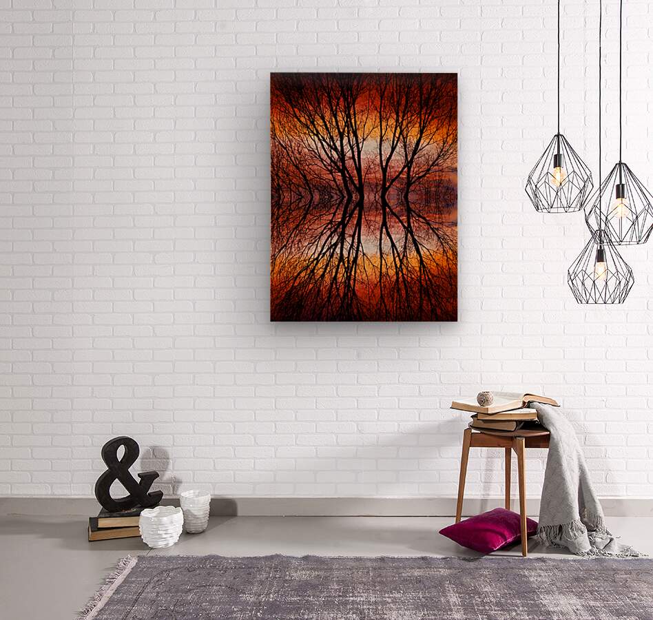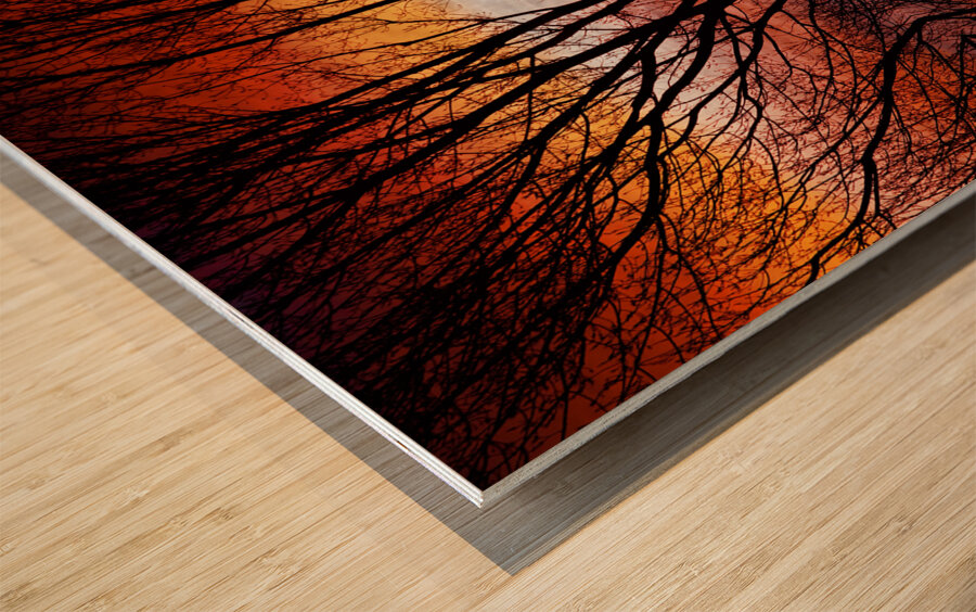 Sunset Tree Silhouette fine art photography print abstract number 2. Mirror image of a beautiful colorful sunset behind the silhouette of tree branche...[+]