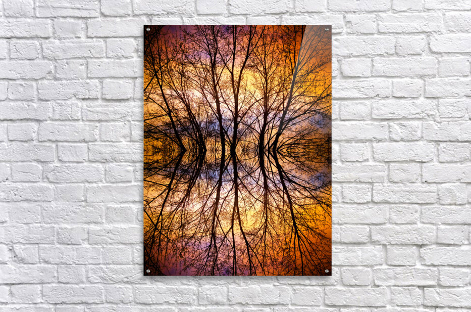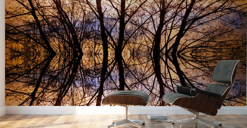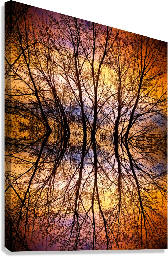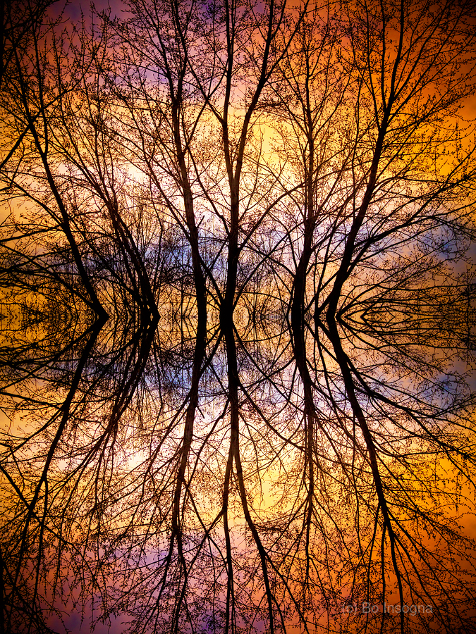 Sunset Tree Silhouette Abstract 1. Colorful mirror image sunset background behind tree branches. www.JamesInsogna.com