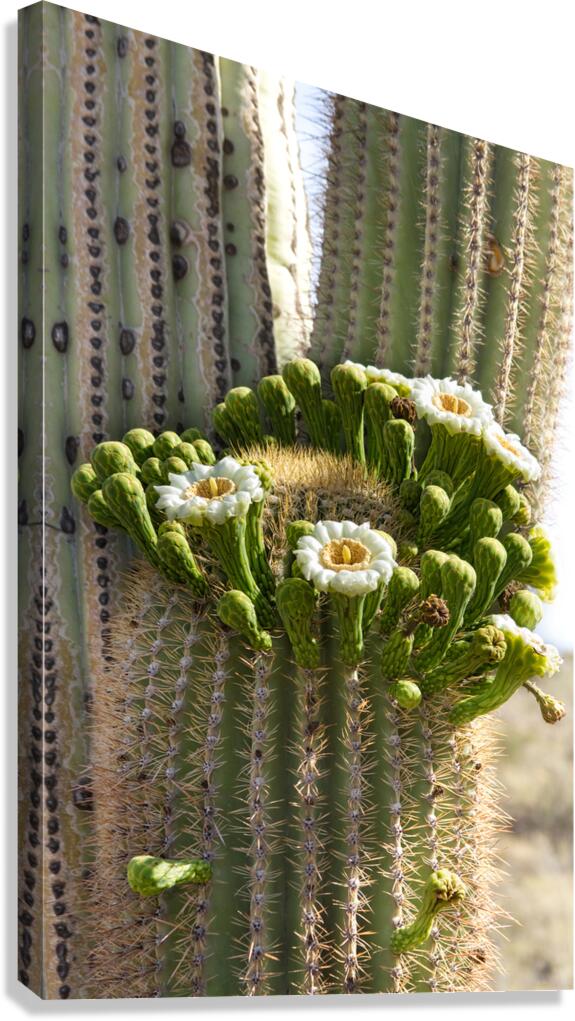 In the month of May the giant saguaro cactus bloom in the Arizona desert. Fine art nature landscape photography prints canvas art acrylic prints and s...[+]