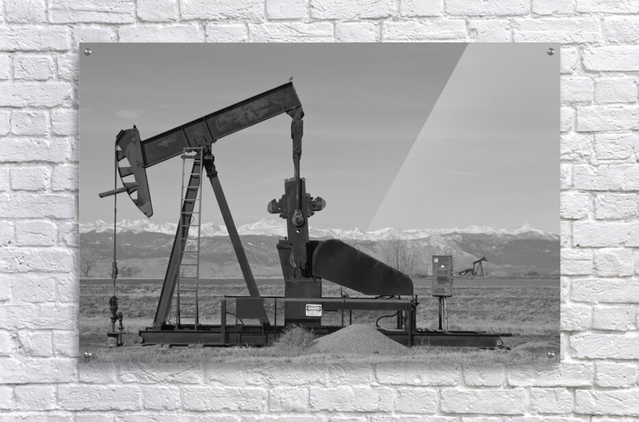 Colorado Rocky Mountain Oil Wells BW Frame print
