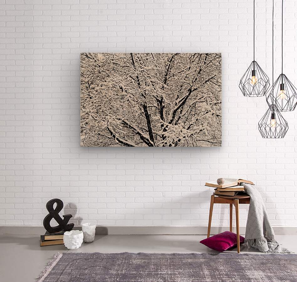 ABOUT THIS ARTWORK: BLACK AND WHITE SNOWY TREE BRANCHES ABSTRACT THREE