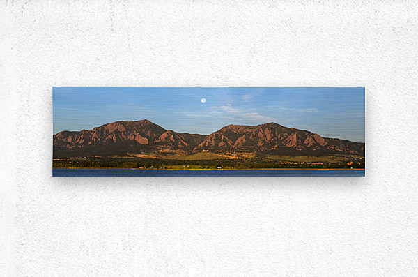 A scenic panorama view from Baseline Lake of the Front Range of the Colorado Rocky Mountains above the city of Boulder Colorado with a full blue moon starting to set right after the sunrise. Colorado fine art nature landscape panorama photography fine art prints framed prints canvas prints acrylic prints metal prints phone cases throw pillows duvet covers greeting cards and stock images by James Bo Insogna C - All Rights Reserved. Please feel Free to share our links with Family or Friends who may also enjoy them. If you like my Art Gallery please spread the word and press the Pinterest FB Google+ Twitter or SU Buttons! Thank you!