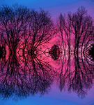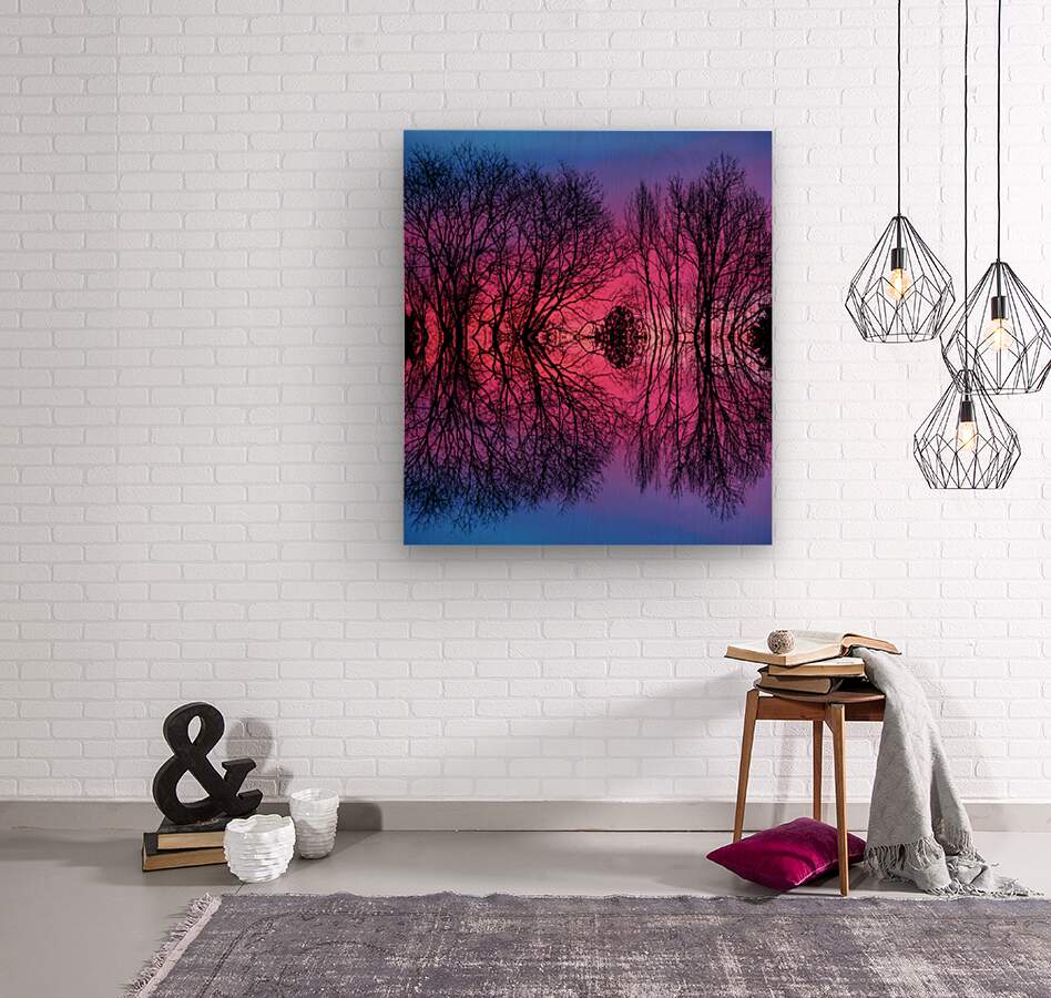 This composite image is an abstract representation of my passion for trees and the beauty of the early morning sunrise. Through the lens of abstract photography I captured the unique colors of the pre-sunrise sky using mirror effects to create a mesmerizing composition. The resulting image blends reality and imagination inviting the viewer to explore the endless possibilities of art and creativity. I hope you enjoy this unique fusion of nature abstract art and photography.