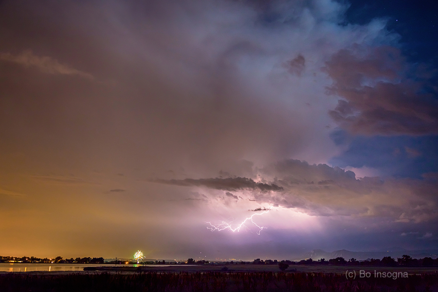 View of a storm and lightning striking with a view from North Longmont to the Flatirons in Boulder on the Fourth of July. Fine art photography prints and image licensing by James Bo Insogna. For more please like subscribe follow and share. Very much appreciated! All artwork and images in this gallery are the original artwork of James Bo Insogna Copyright All Rights Reserved and is protected by US and International Copyright laws.