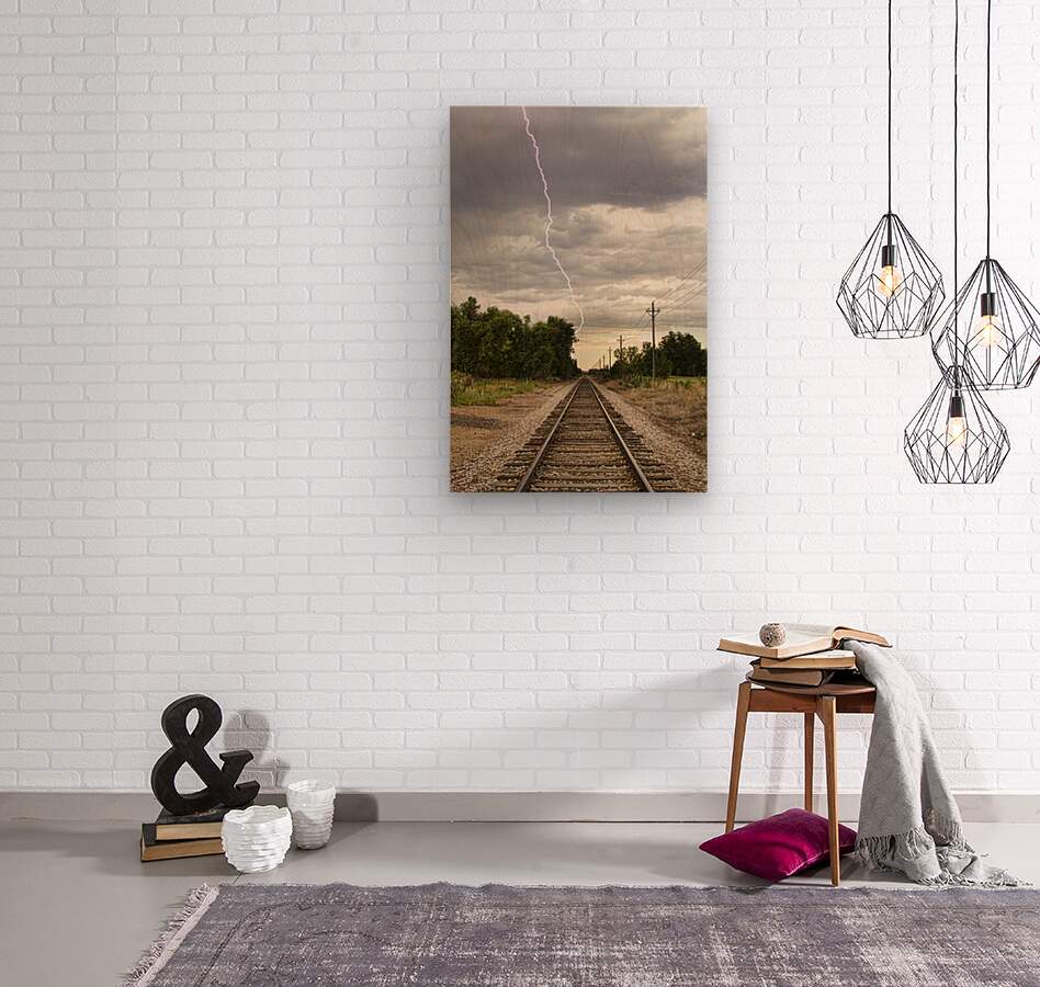 Get this artwork "Lightning Striking By The Train Tracks" in a framed print.