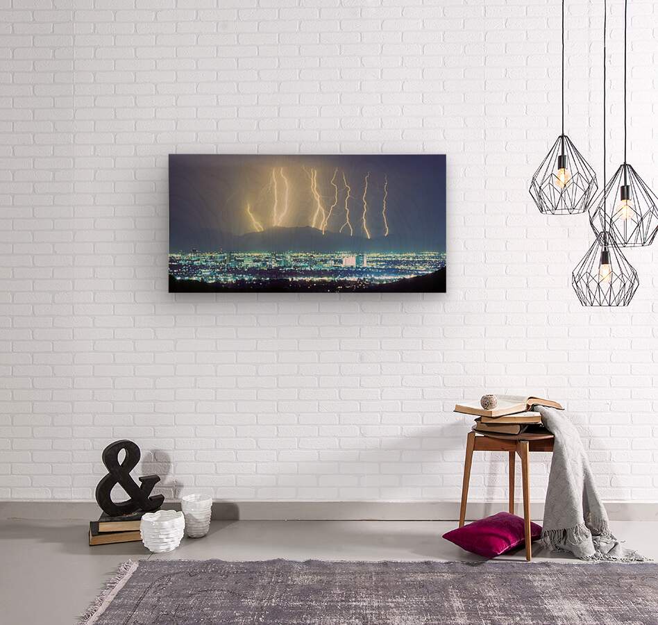 Lightning Over Phoenix Arizona Panorama  Wood print