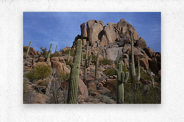 Get this artwork "Scenic with Big Boulders Towering Giants of the Sonoran Desert" in a framed print.