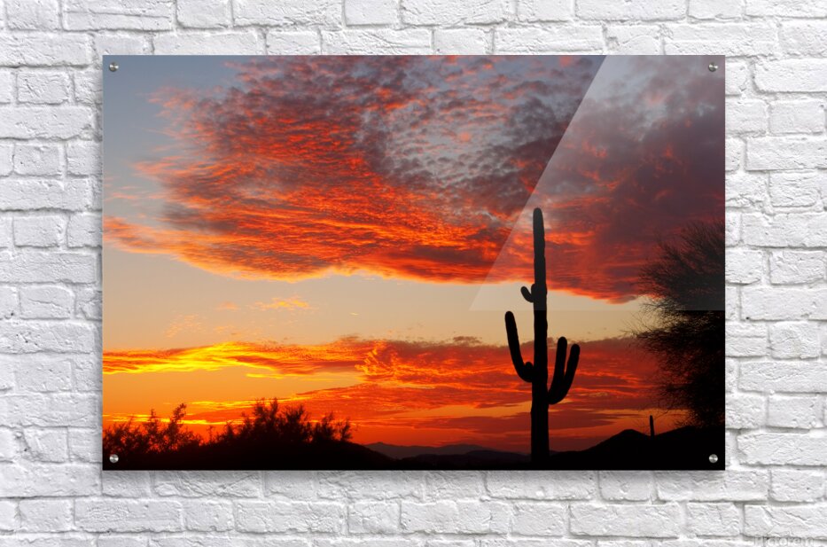 Get this artwork " Fiery Arizona Sunset Behind a Silent Saguaro" in a framed print.