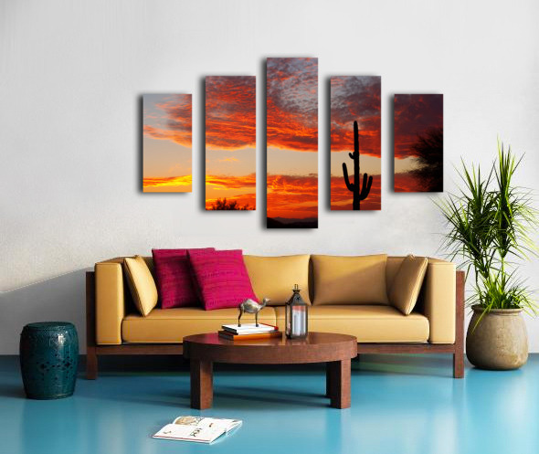 Fiery Arizona Sunset Behind a Silent Saguaro Canvas print