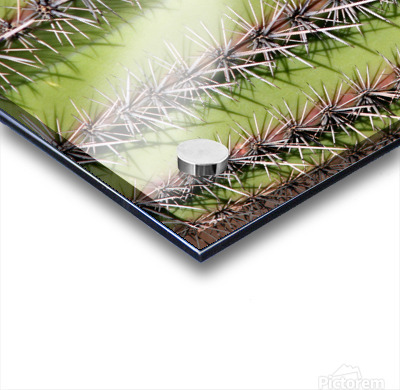 Vertical fine art photography print of a Southwest Saguaro cactus close-up featuring sharp thorns and textured detail?available as canvas wall art or photographic print.