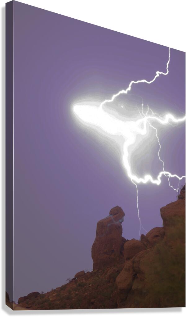 The Praying Monk is a striking rock formation perched on the side of the iconic Camelback Mountain nestled between Phoenix and Scottsdale Arizona. From the moment I first laid eyes on it I was captivated? Envisioning a powerful spiritual image of lightning striking nearby. It became a personal mission a photographic challenge that would take me three years to fulfill. This is the real shot. The one I had waited for. I can?t begin to count how many times I hiked to my spot high on the mountainside only to leave empty-handed. But on this particular night everything aligned?except for my nerves. It was one of the most terrifying lightning-chasing nights I?ve ever experienced. The first bolt came in so violently that it nearly blew out the frame. The energy was raw intense?unfiltered. There?s nothing quite like standing on a giant rock with a metal tripod during an electrical storm hoping your years of patience pay off before nature decides otherwise. That storm danced around the mountains looping back and slamming into the scene again from behind?creating the perfect opportunity. After capturing this image the chase continued north toward Scottsdale. This photograph is the first in a five-part series born from persistence adrenaline and a deep reverence for the desert sky.