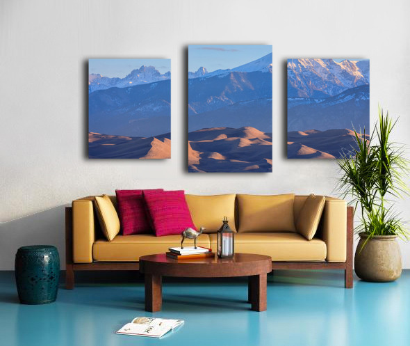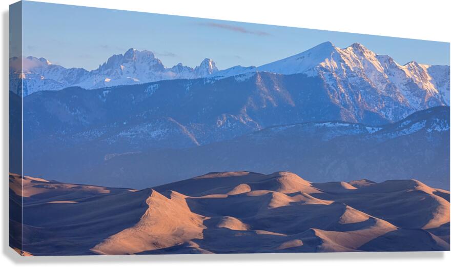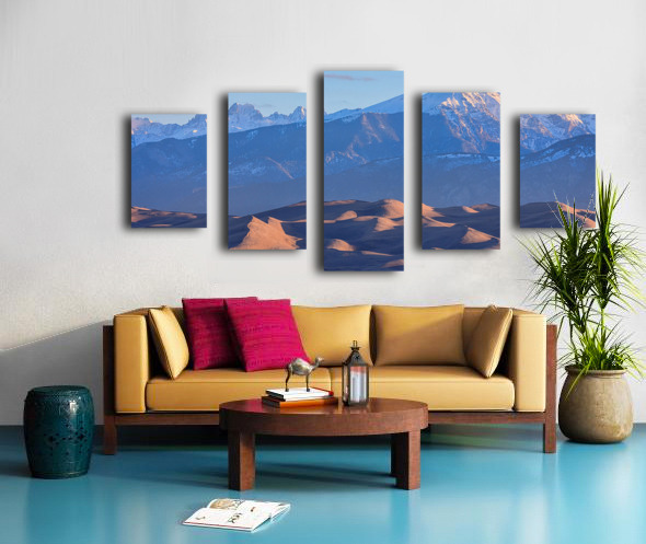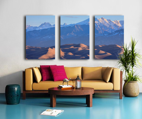 Early Morning Sand Dunes and Snow Covered Peaks Canvas print