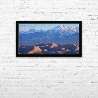 Get this artwork "Early Morning Sand Dunes and Snow Covered Peaks" in a framed print.