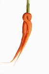 Funny Shaped Carrot on white. A playful carrot entwined like dancers reaching toward the light with graceful form and natural charm. This whimsical fo...[+]