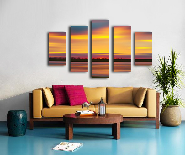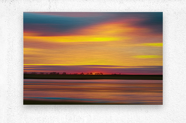 A modern and vibrant fine art photograph that captures a dramatic sunset with a unique abstract quality. The image features soft blurred strokes of in...[+]