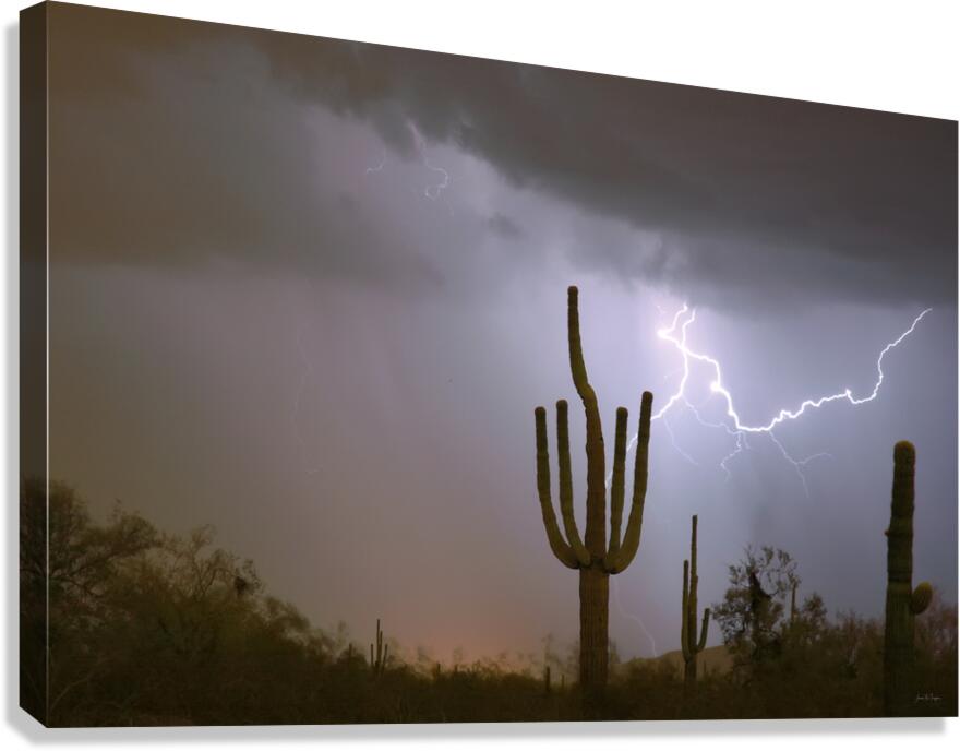 Desert Monsoon Lightning Saguaro Cactus Storm Photography Canvas print