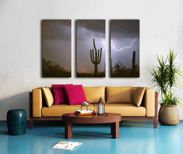 Get this artwork "Desert Monsoon Lightning Saguaro Cactus Storm Photography" in a framed print.