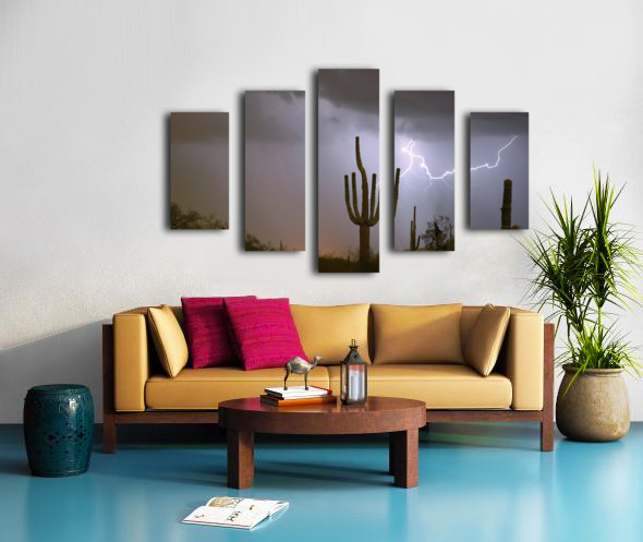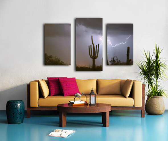 Desert Monsoon Lightning Saguaro Cactus Storm Photography Picture Frame Printing