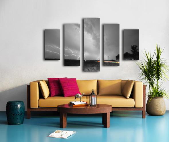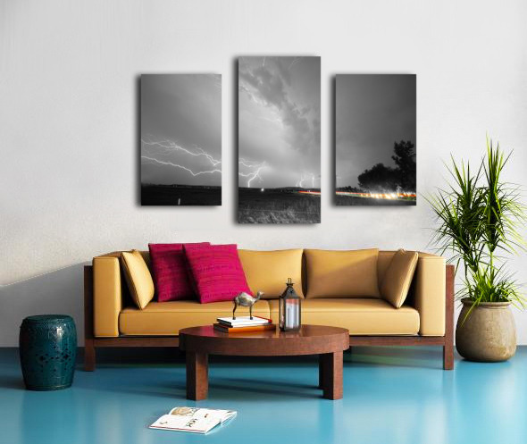 Black and White Lightning Thunderstorm with Color Light Trail Picture Frame Printing