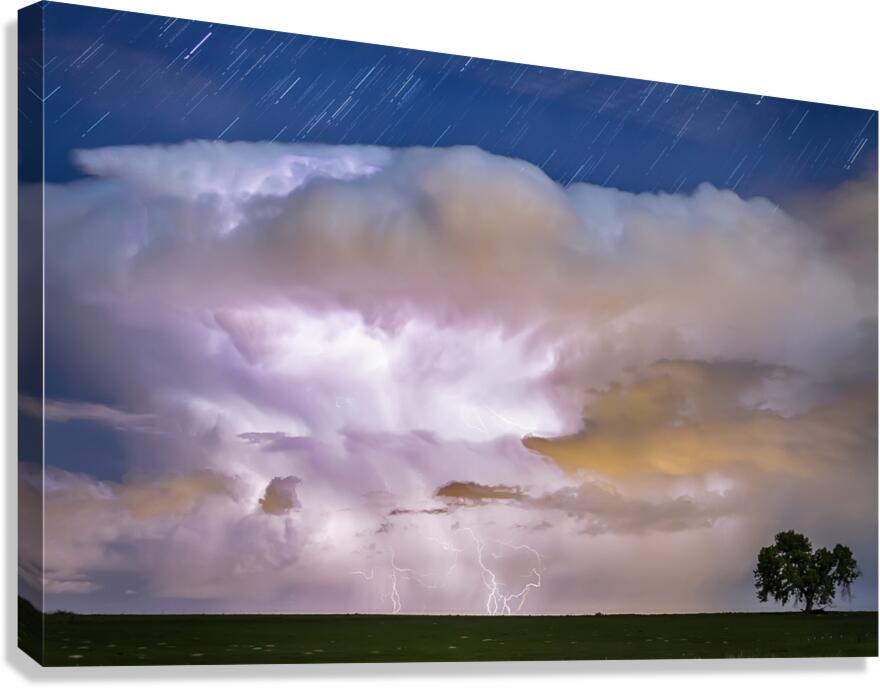 Star trails and blue sky above this thunderstorm cell lit up with lightning dancing on the horizon putting on a nice show. This is a three minute exposure done by stacking eight thirty second exposure images in a row and stacking them to keep the noise level very low. Colorado fine art nature landscape lightning weather photography poster prints decorative canvas prints acrylic prints metal prints and stock images by James Bo Insogna C - All Rights Reserved. Please feel Free to share our links with Family or Friends who may also enjoy them. If you like my Art Gallery please spread the word and press the Pinterest FB Google+ Twitter or SU Buttons! Thank you! *PLEASE NOTE WATERMARKS WILL NOT BE ON THE PURCHASE PRINTS*