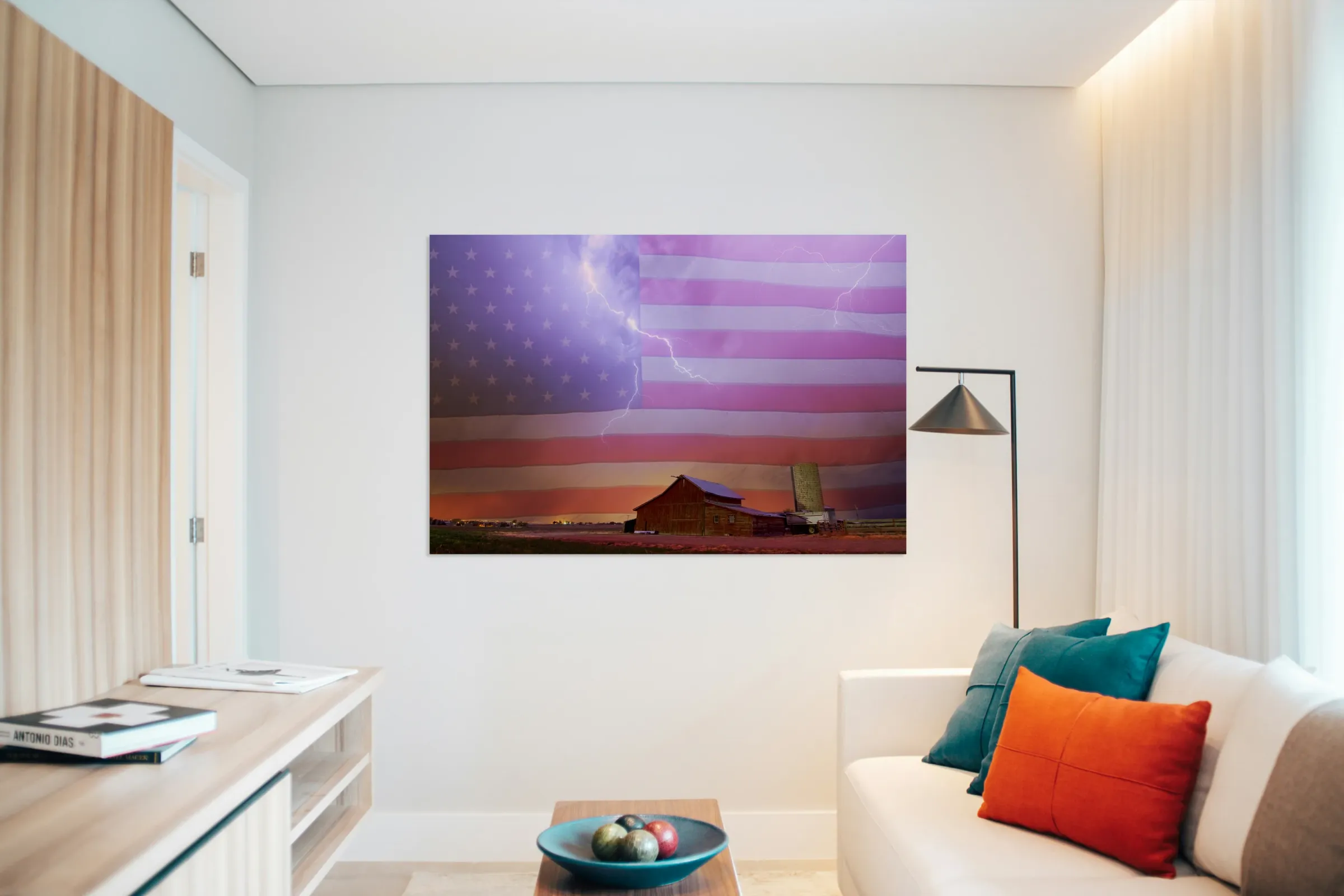 American country storm composite image of a red barn lightning thunderstorm country thunderstorm landscape and American USA flag background. Patriotic fine art nature landscape photography poster prints decorative canvas prints acrylic prints metal prints corporate artwork greeting cards and stock images by James Bo Insogna C - All Rights Reserved. Please feel Free to share our links with Family or Friends who may also enjoy them. If you like my Art Gallery please spread the word and press the Pinterest FB Google+ Twitter or SU Buttons! Thank you! *PLEASE NOTE WATERMARKS WILL NOT BE ON THE PURCHASE PRINTS*