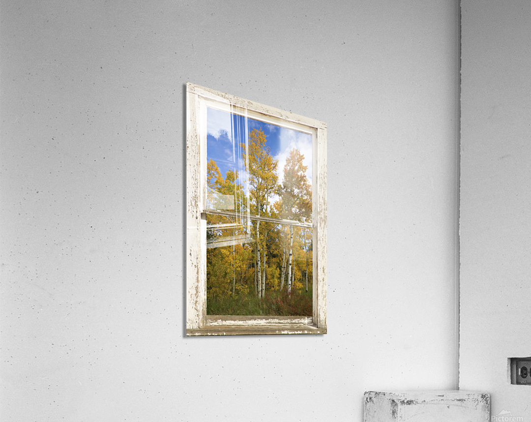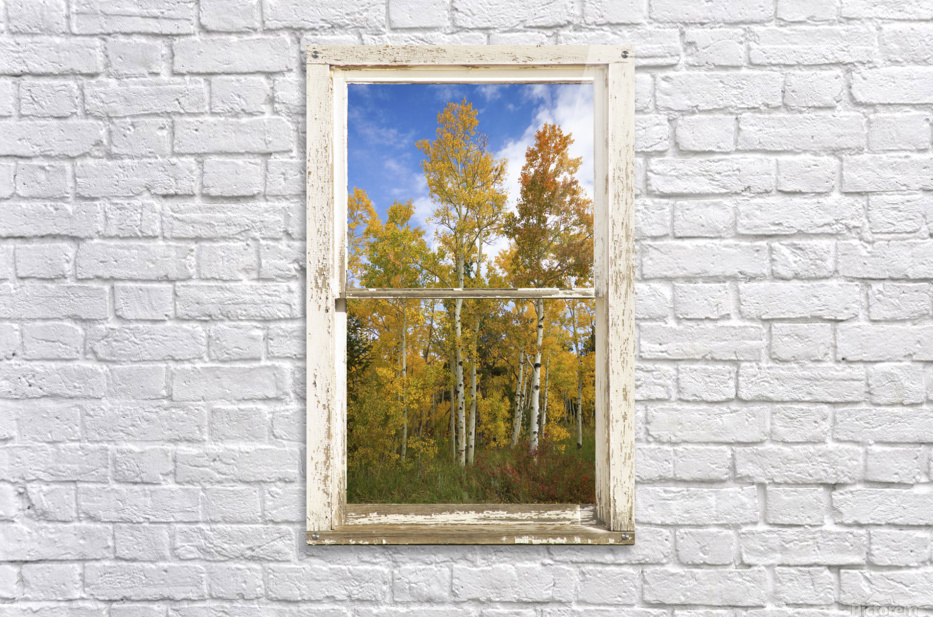 A portrait view of Aspen trees with colorful autumn fall foliage leaves. Boulder County Colorado. Bring nature indoors now you can add a window with a view to any room in your home or office with our picture window fine art striking photography nature landscape canvas wraps and acrylic prints. Looking window into paradise. The Window is the frame how cool is that! *PLEASE NOTE WATERMARKS WILL NOT BE ON THE PURCHASE PRINTS*
