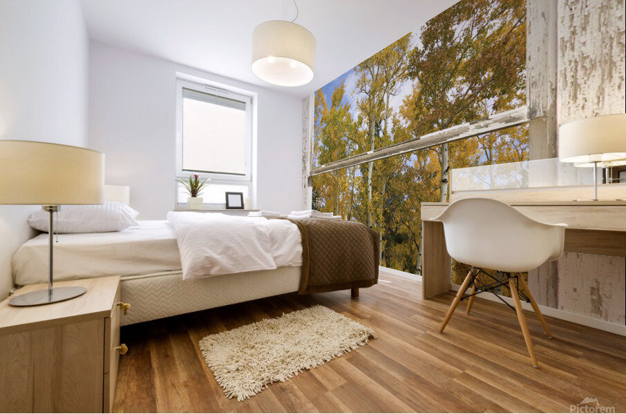 A portrait view of Aspen trees with colorful autumn fall foliage leaves. Boulder County Colorado. Bring nature indoors now you can add a window wi...[+]