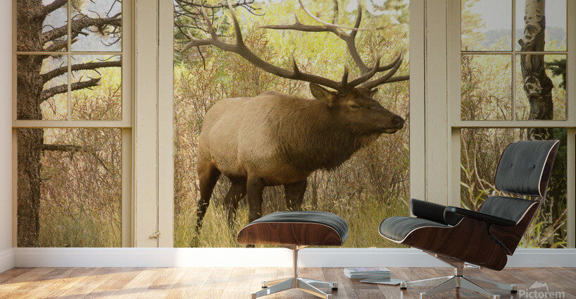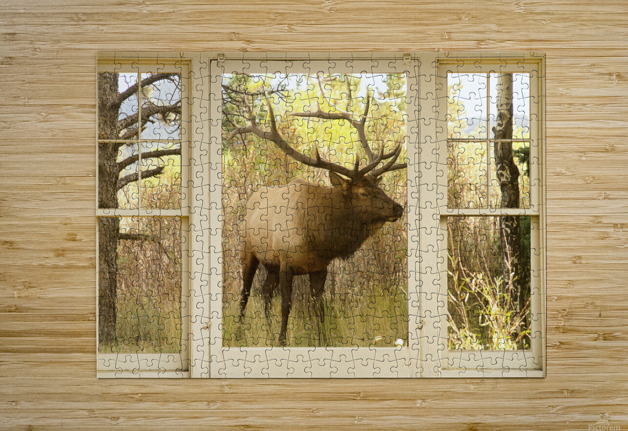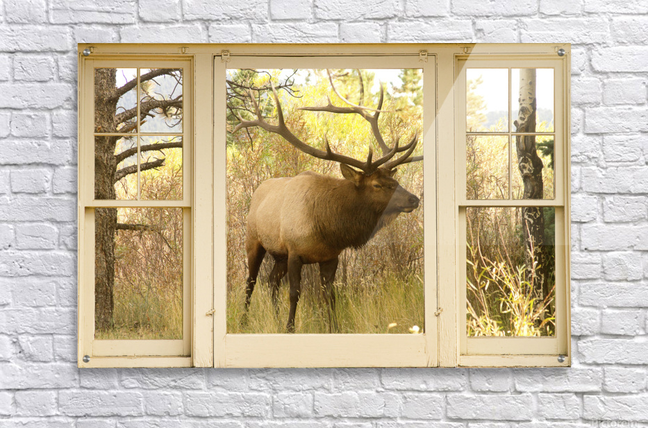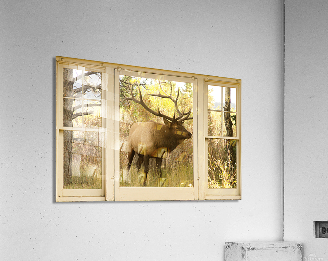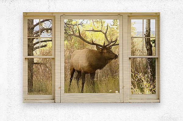 A dominant bull elk in colorful Colorado Country window view. Now you can have a window with a view in any room with our picture window fine art str...[+]