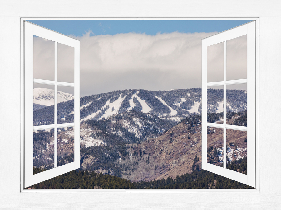 A scenic view out to the ski slopes through an open white picture window frame. A fantasy fine art photography window optical illusion into the majestic landscapes of the snowy mountain tops. Bring nature indoors now you can add a window with a view to any room in your home or office with our picture window frame fine art striking photography nature landscape art prints. The IMAGE is the FRAME how cool is that! Question: Do you have a home or office room without any windows? Do you want to set the mood in a room decor? Do you dream of a room with a view? The Answer: Now you can have a window with a view in any room with our NEW picture window frame fine art striking photography nature landscape prints all with a view and ready to hang by photographer James Bo Insogna. This is an incredible way to decorate your office walls home walls cafe restaurant boardroom waiting room trade booth corporation or almost any commercial space. Museum quality art with fast secure world wide shipping to your door. Colorado Fine art nature landscape photography poster prints decorative canvas prints acrylic prints metal prints greeting cards and stock images by James Bo Insogna *PLEASE NOTE WATERMARKS WILL NOT BE ON THE PURCHASE PRINTS*