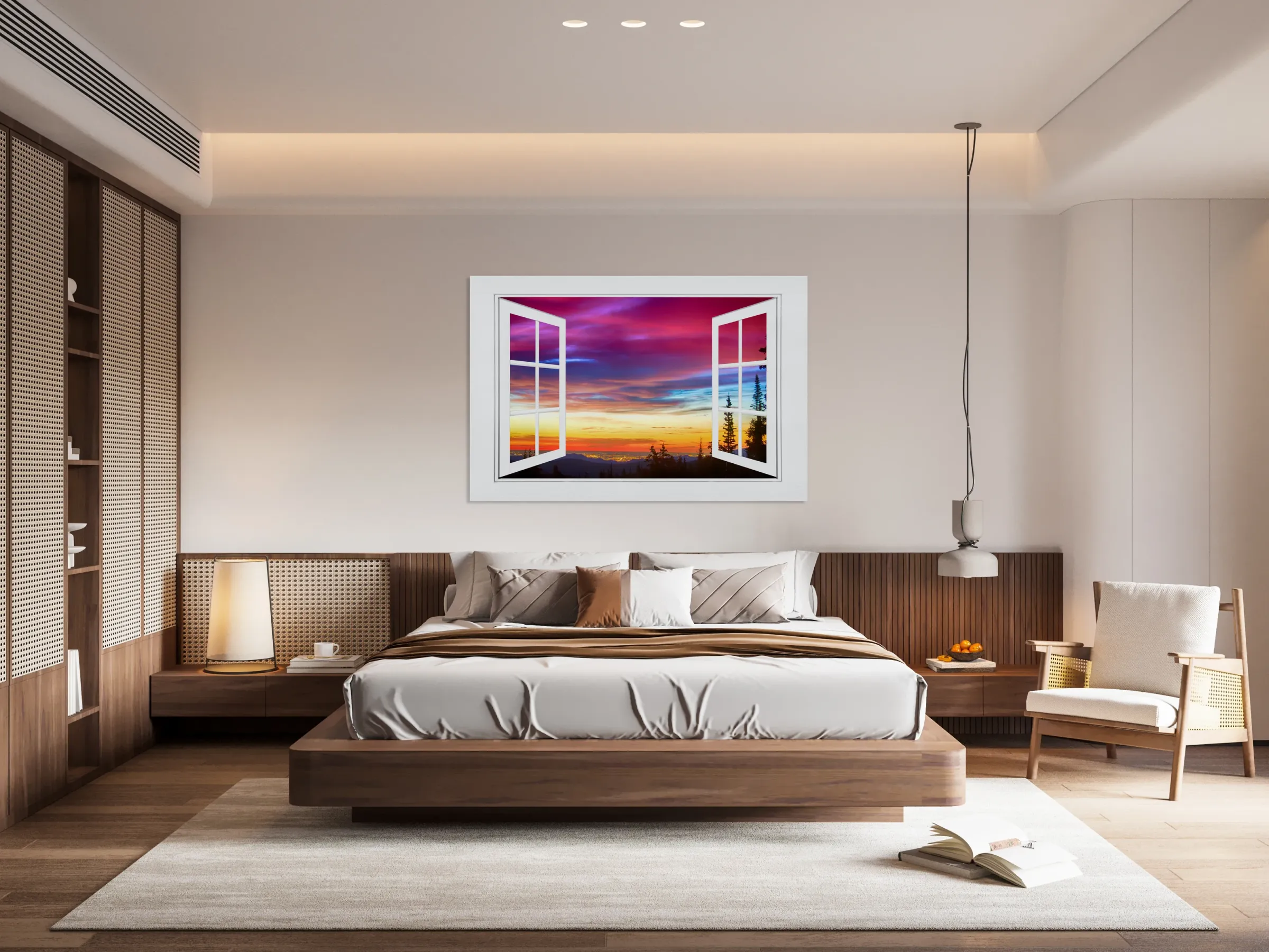 Get this artwork "Early Morning Mountain Open White Picture Win" in a framed print.