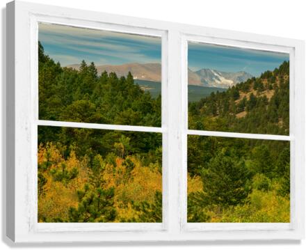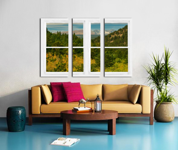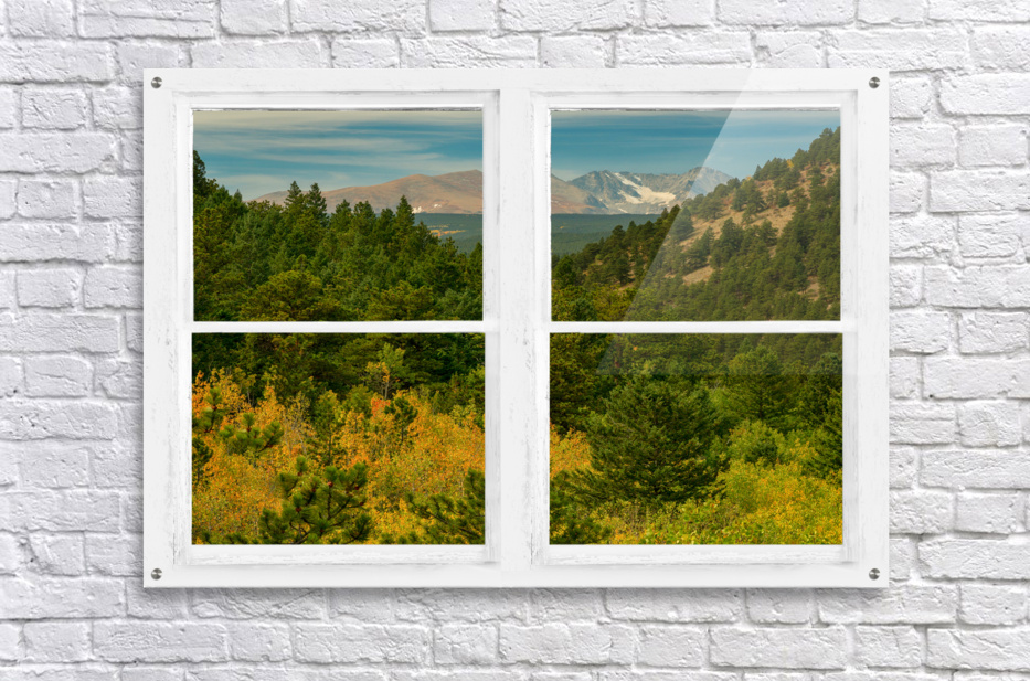 Rocky Mountain autumn season view through a classic white distressed rustic whitewashed picture window. Your very own private window view into the mountains vacation view or for motivation. Create a fine art photography optical illusion to your decor of the beautiful colorful topical Island paradise a view through an old distressed rustic white window . Bring nature indoors now you can add a window with a view to any room in your home or office with our picture window nature landscape art prints. The IMAGE is the FRAME how cool is that! Do you have a home or office room without any windows? Do you want to set the mood in a room decor? Do you dream of a room with a view? Now you can have a window with a view in any room with our picture window frame fine art striking photography nature landscape available as a poster prints canvas wrap acrylic fine art prints and metal prints all with a view and ready to hang by photographer James Bo Insogna C All Rights Reserved. This is an incredible way to decorate your window less office walls home walls cafe restaurant boardroom waiting room trade booth corporation or almost any commercial space. *PLEASE NOTE : The Window Frame is part of the image. It is recommended ordering this image a large Acrylic Print - Metal Print - or Stretched Canvas Wrap with white sides. **PLEASE NOTE WATERMARKS WILL NOT BE ON THE PURCHASE PRINTS*