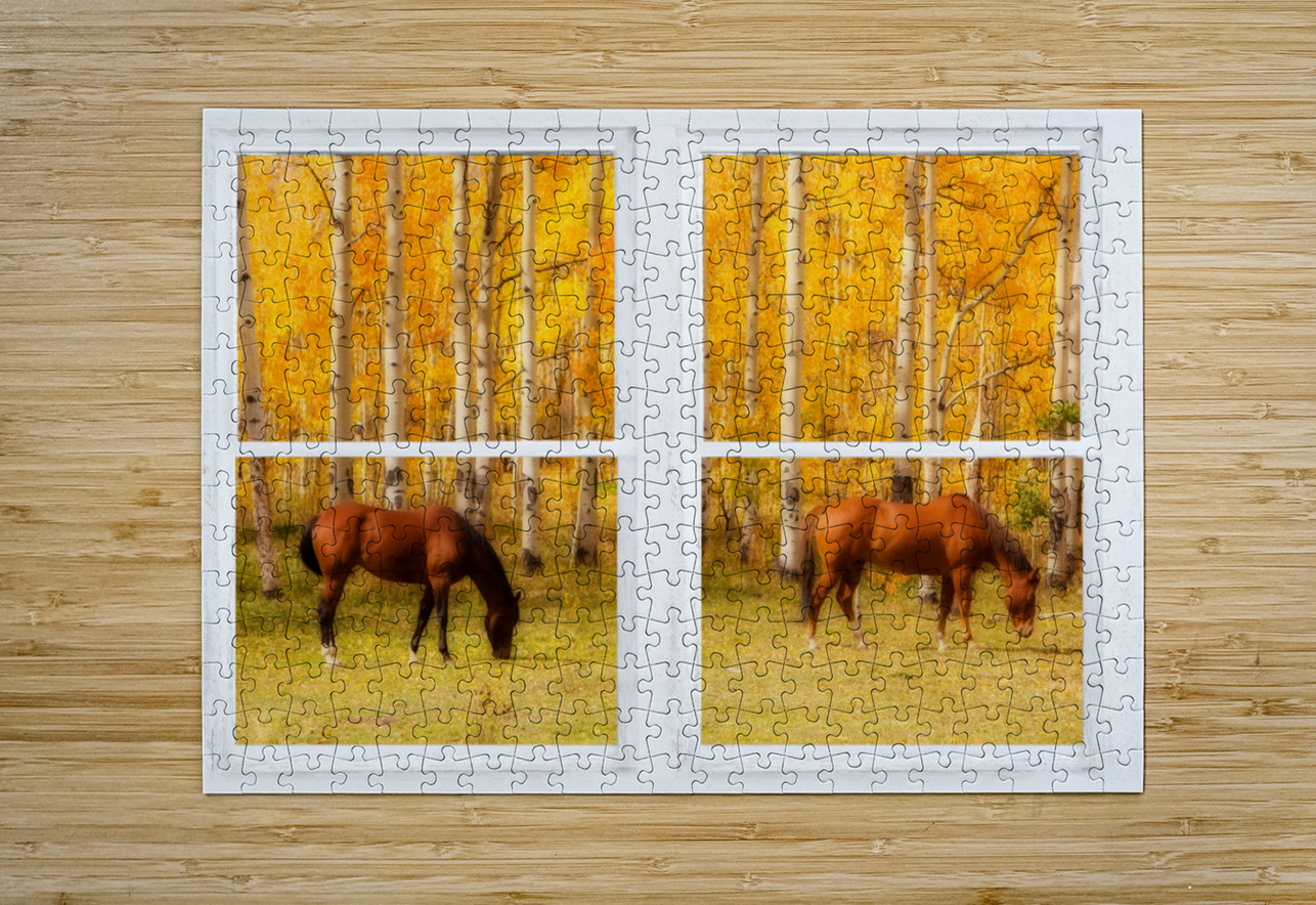 2 Horses Aspen Trees Whitewash Picture Window Bo Insogna Puzzle printing