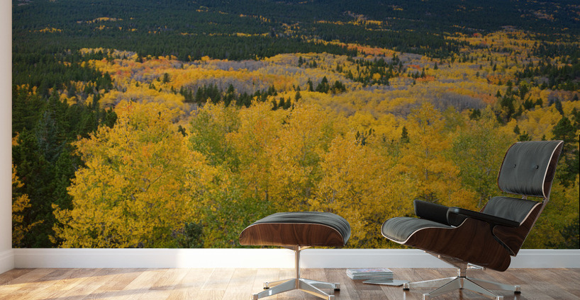 Colorful Colorado panorama view at its best the autumn season on Peak to Peak highway of aspens in orange yellow and gold. Fine art Colorado nature la...[+]