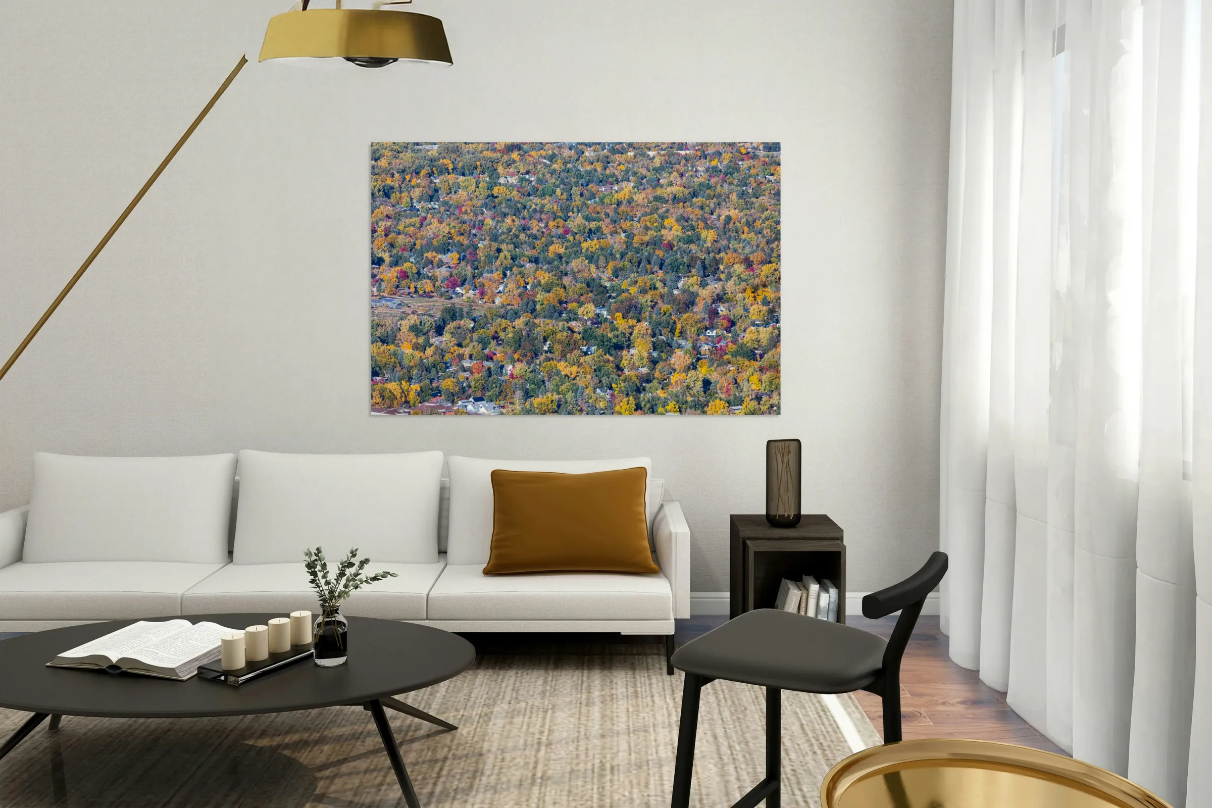 Boulder Colorado is magical in the autumn season with all the variety of trees and color everywhere you look. Here is a view from above of Colorful Boulder Colorado in the fall season.