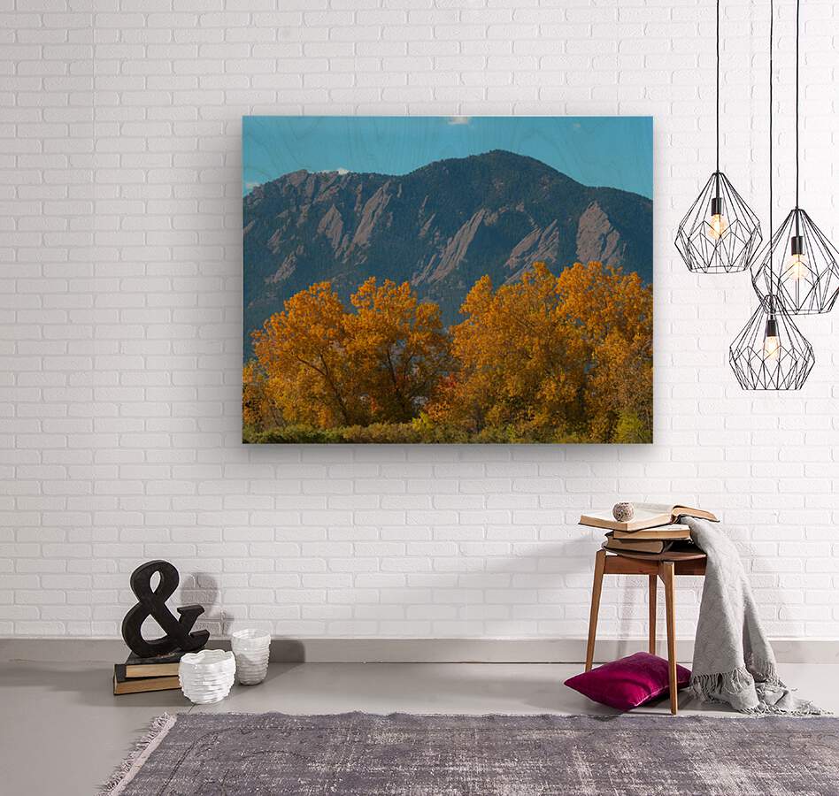 Boulder Flatirons Mighty Cottonwood Trees Wood print