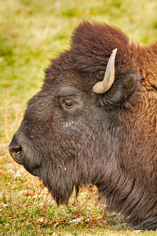 Buffalo close-up headshot profile view. Bison hanging out in north Boulder County Colorado. They weigh close to 2000 pounds ? and some males may top...[+]