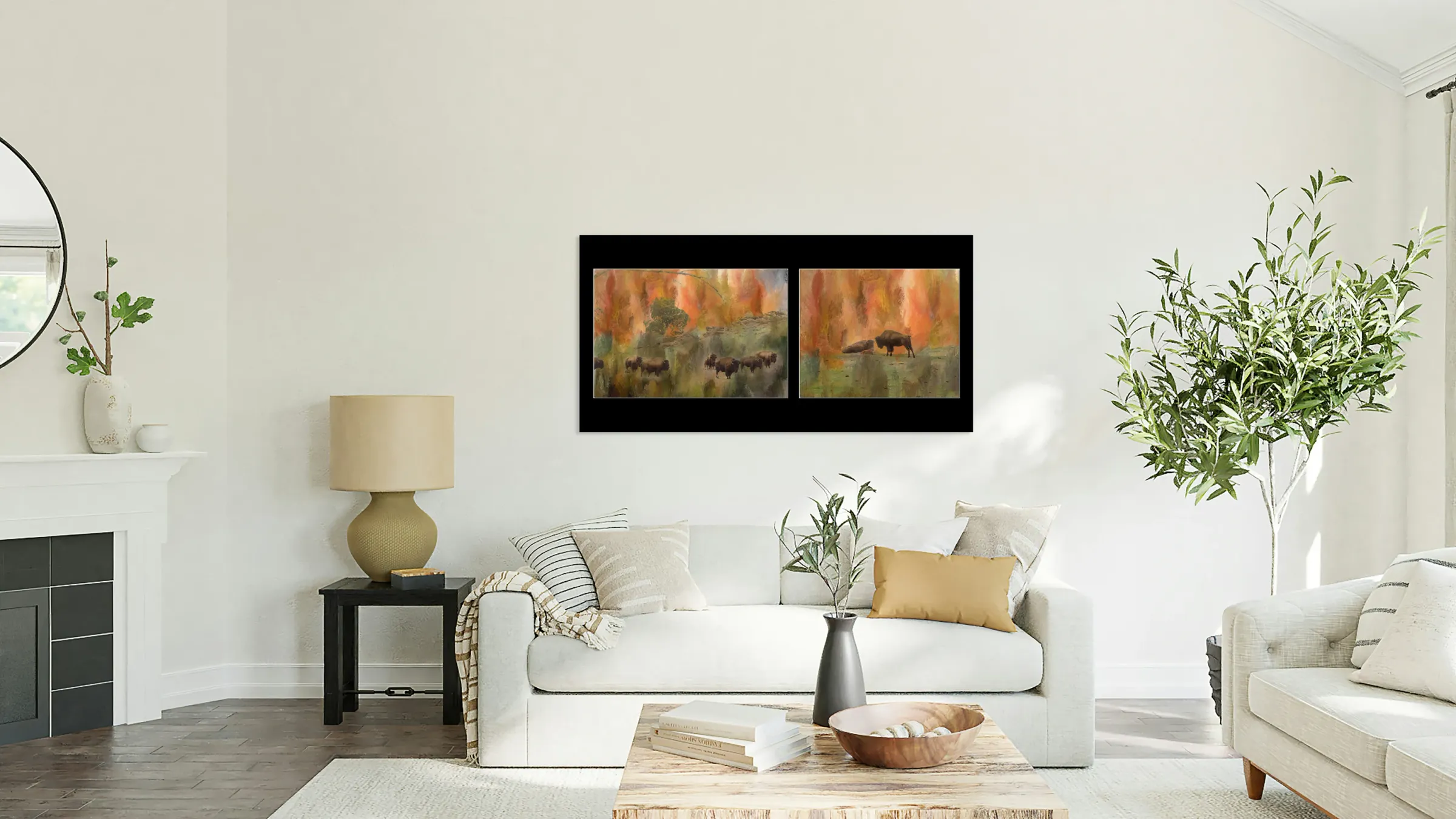 ABOUT THIS ARTWORK: BISON HERD DIPTYCH