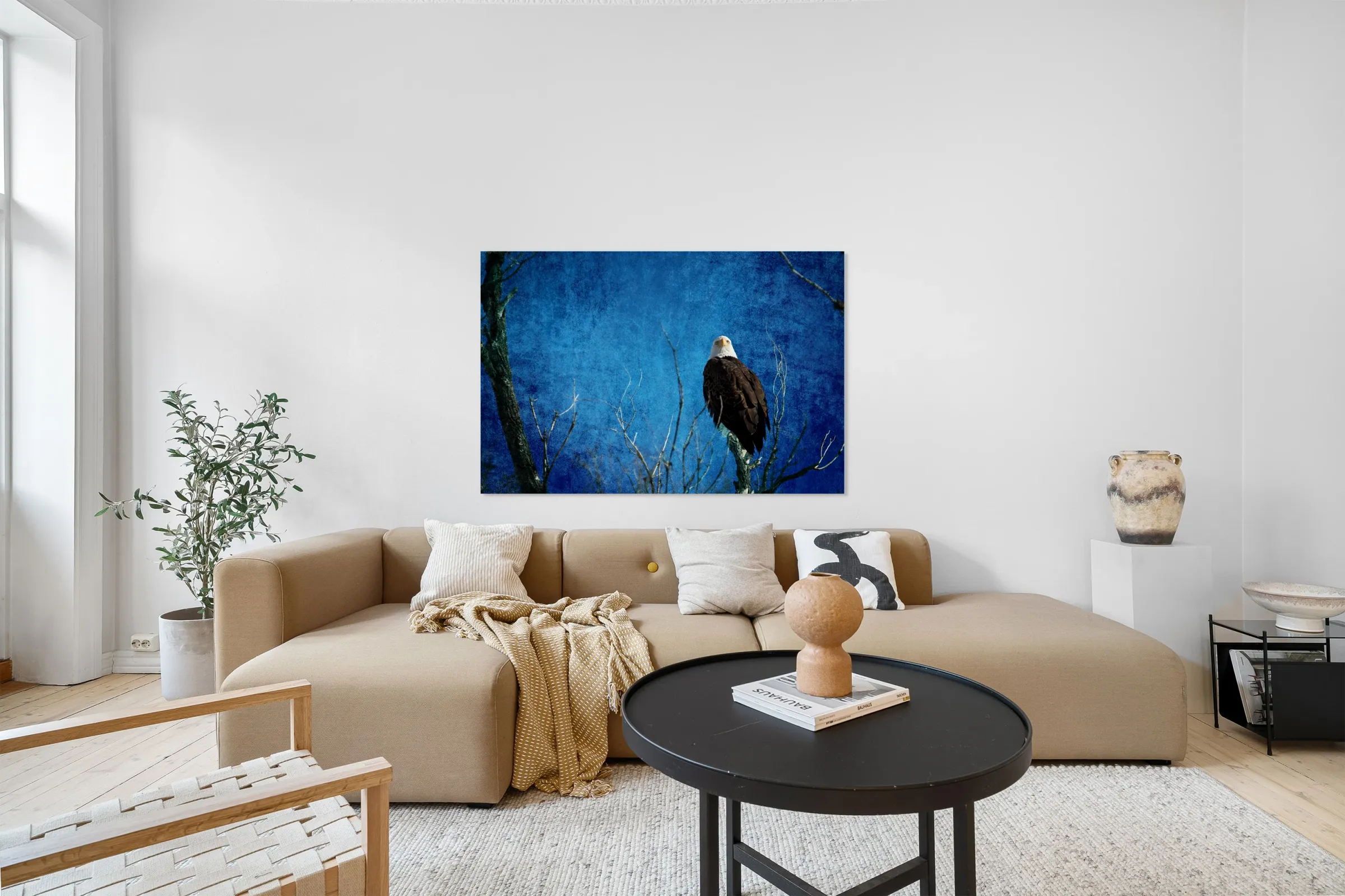 Get this artwork "Bald Eagle Blues Into Night" in a framed print.