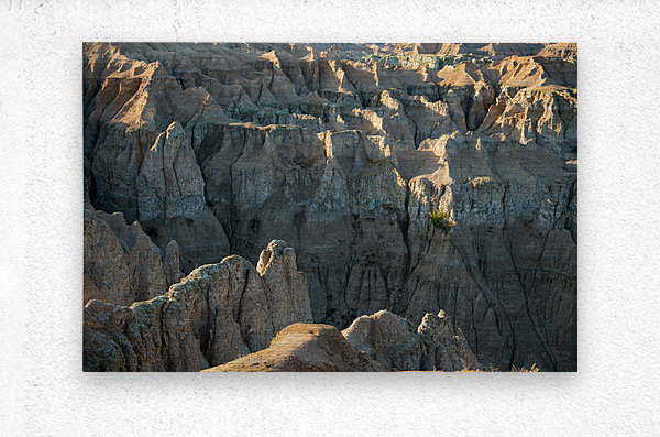 A Tapestry of Textures: Exploring the Badlands Textured Landscape in South Dakota This captivating photography image unveils the intricate textures found within the Badlands of South Dakota offering a glimpse into the mesmerizing world of natures craftsmanship. The image showcases the diverse array of textures that characterize this unique landscape inviting viewers to explore its tactile beauty. From the rugged rock formations to the soft contours of the land every element in the frame tells a story of time and transformation. The layers of sedimentary rock etched with delicate lines and patterns create a rich tapestry of textures that draw the eye in. Each nook and cranny reveals the enduring mark of wind water and the geological forces that shaped the Badlands over millennia. The interplay of light and shadow further accentuates the textures creating depth and dimension within the image. Shadows dance across the rugged surfaces enhancing the intricacies and bringing them to life. It is a visual symphony that evokes a sense of touch as if one could run their fingers along the rough edges and feel the eons of history embedded within. Within this textured landscape resilient vegetation finds its place adding a touch of vibrant green against the earthy tones. The contrast between the softness of the grasses and the ruggedness of the rock formations creates a harmonious juxtaposition showcasing the diversity of textures that coexist in this remarkable ecosystem. As viewers delve into the image they can almost feel the tactile sensations of the landscape. The roughness of weathered rocks the smoothness of wind-swept dunes and the gentle swaying of grasses in the breeze awaken a sensory connection to the natural world. This photography image of the Badlands textures is an invitation to appreciate the intricacies and artistry found within the seemingly barren landscape. It beckons viewers to embark on a tactile exploration to immerse themselve