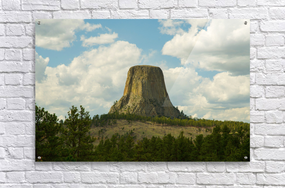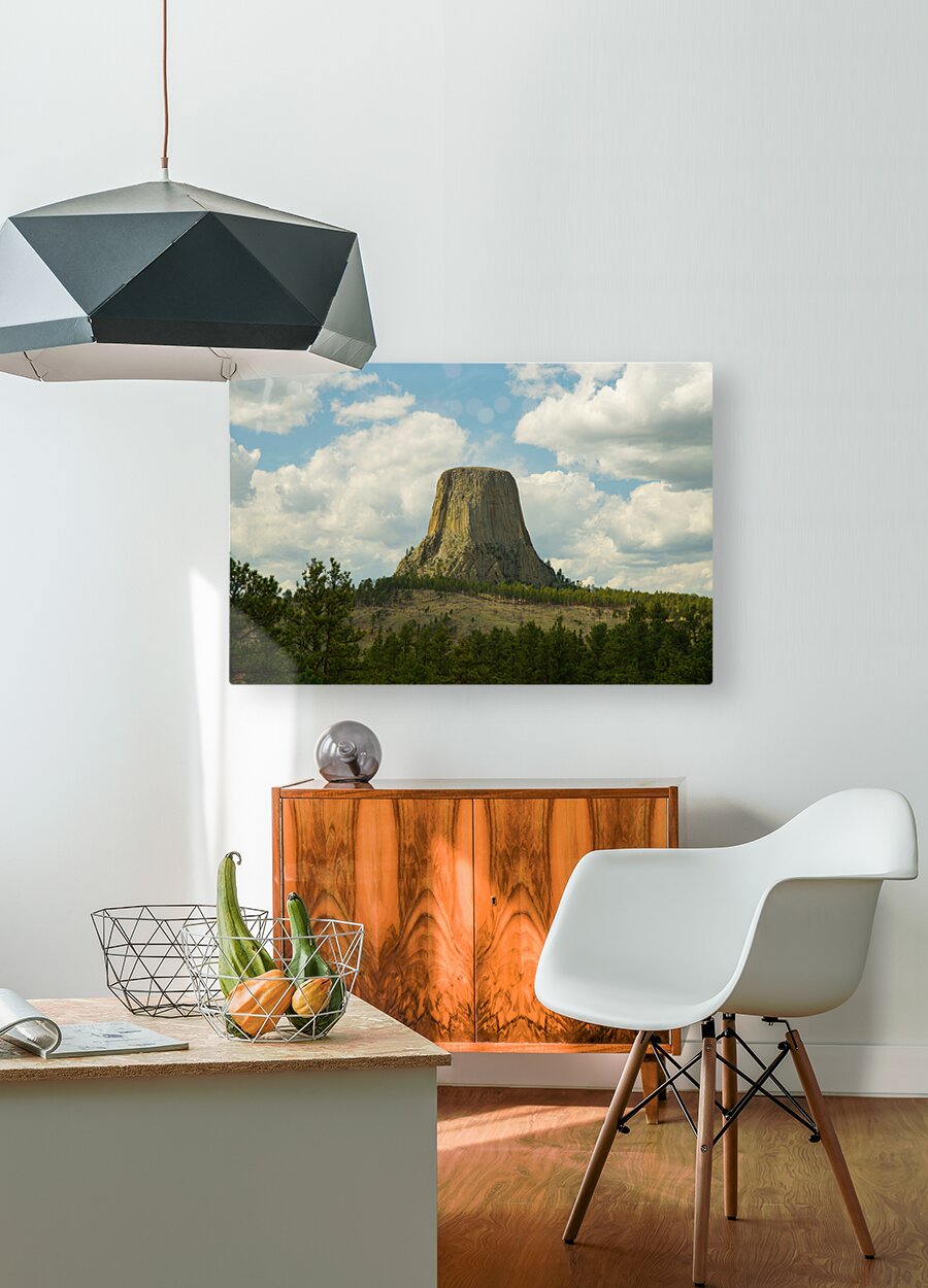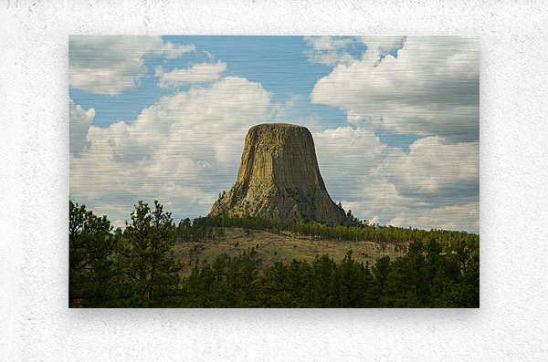 ABOUT THIS ARTWORK: MAJESTIC DEVILS TOWER IN WYOMING AMIDST PINE FOREST