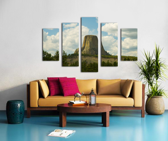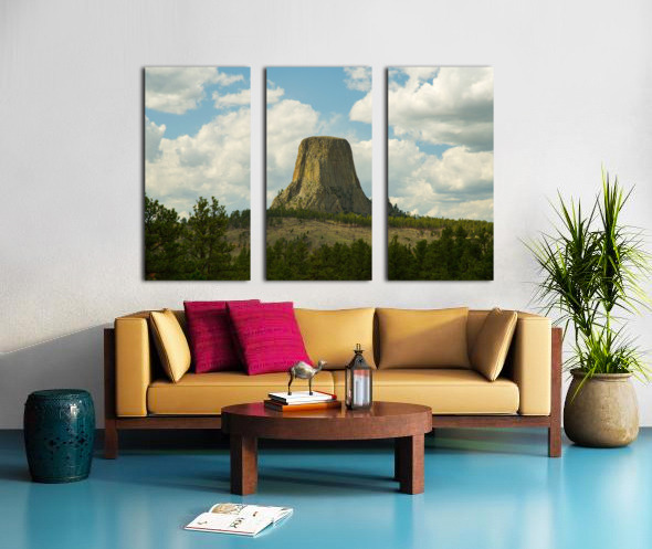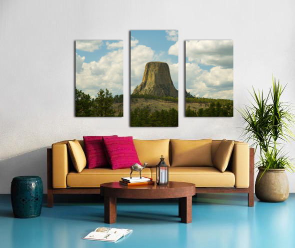 Majestic Devils Tower in Wyoming Amidst Pine Forest Canvas print
