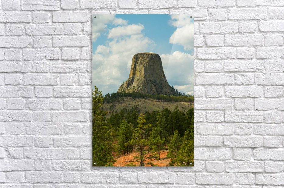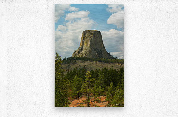 ABOUT THIS ARTWORK: MAJESTIC DEVILS TOWER IN WYOMING SURROUNDED BY PINE FOREST