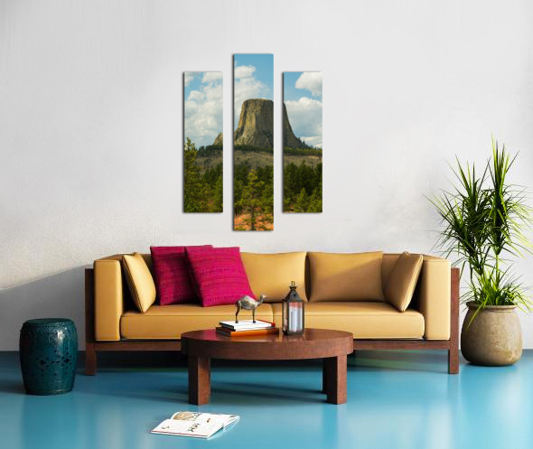 Majestic Devils Tower in Wyoming Surrounded by Pine Forest Canvas print