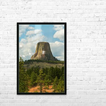 Majestic Devils Tower in Wyoming Surrounded by Pine Forest Frame print