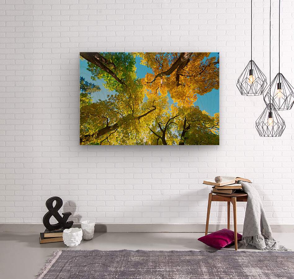 ABOUT THIS ARTWORK: VIBRANT AUTUMN LANDSCAPE - COLORFUL TREES UNDER BLUE SKY