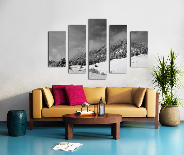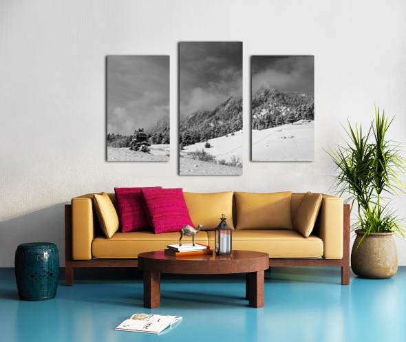 Boulder Colorado Flatirons April Snow In Black and White Canvas print