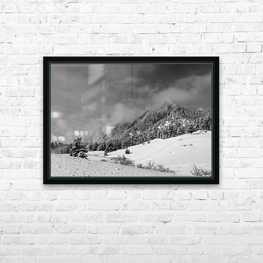 Boulder Colorado Flatirons April Snow In Black and White Picture Frame Printing